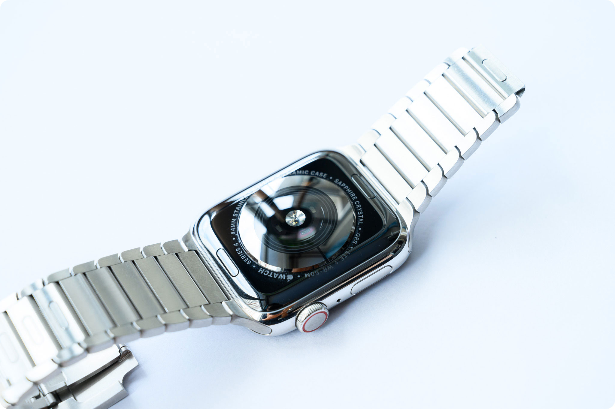 Dây Link Bracelet thép không gỉ giống với các loại dây đeo thép theo từng mắt gắn liền với nhau, tuy nhiên Link Bracelet của Apple được gia công tỉ mỉ, có nút bấm dễ dàng tháo / hoặc gắn các phần mắt dây một cách dễ dàng mà không cần công cụ mở bên ngoài. Ngoài ra thao tác bấm mở chốt dây theo cơ chế cánh bướm cũng rất dễ dàng, đoạn dây áp vào bên trong tay người dùng khi mở ra chỉ mỏng 2,6mm, đủ để khi bấm lại thì phần chốt không bị nhô lên so với tổng thể dây.
