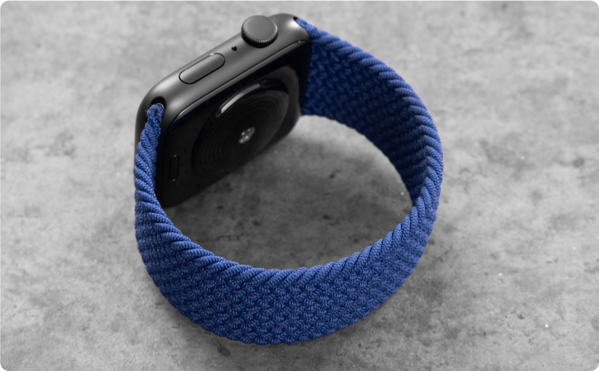 Tương tự như vậy với dây Braided Solo Loop, dây được đan lại từ 16.000 sợi chỉ polyester tái chế xung quanh một sợi dây silicone mỏng và uốn lại với nhau. Sau đó dây sẽ được cắt laser tỉ mỉ để đảm bảo được độ dài chính xác nhất theo từng kích thước.
