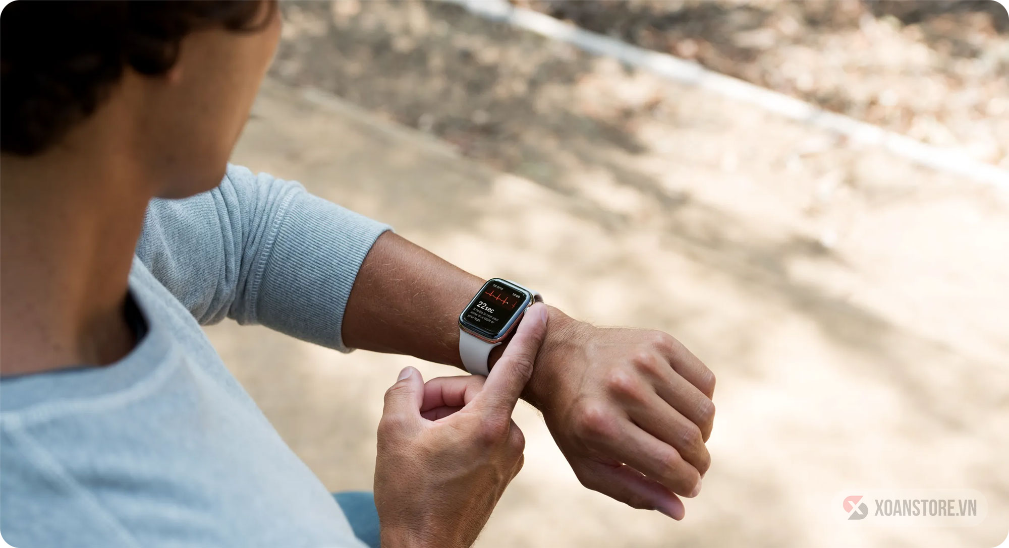 Cảm biến nhịp tim trên Apple Watch 4 được nâng lên một tầm cao mới khi bổ sung thêm cả cảm biến ở Digital Crown, bên cạnh các cảm biến ở mặt dưới đồng hồ. Không chỉ đo nhịp tim một cách chính xác, bạn còn đo được cả điện tâm đồ để sớm nhận biết các bệnh liên quan đến tim. Apple Watch Series 4 sẽ đưa ra các cảnh báo khi nhịp tim quá cao, quá thấp hay bị rối loạn. Chỉ cần mở ứng dụng và đặt ngón tay lên núm xoay Digital Crown, bạn sẽ nhanh chóng biết được tình trạng sức khỏe của mình.