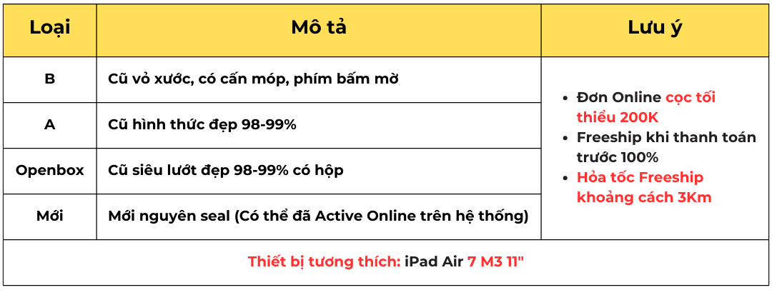 Tương thích với tất cả các dòng iPad Air 4/5/6/7 11"