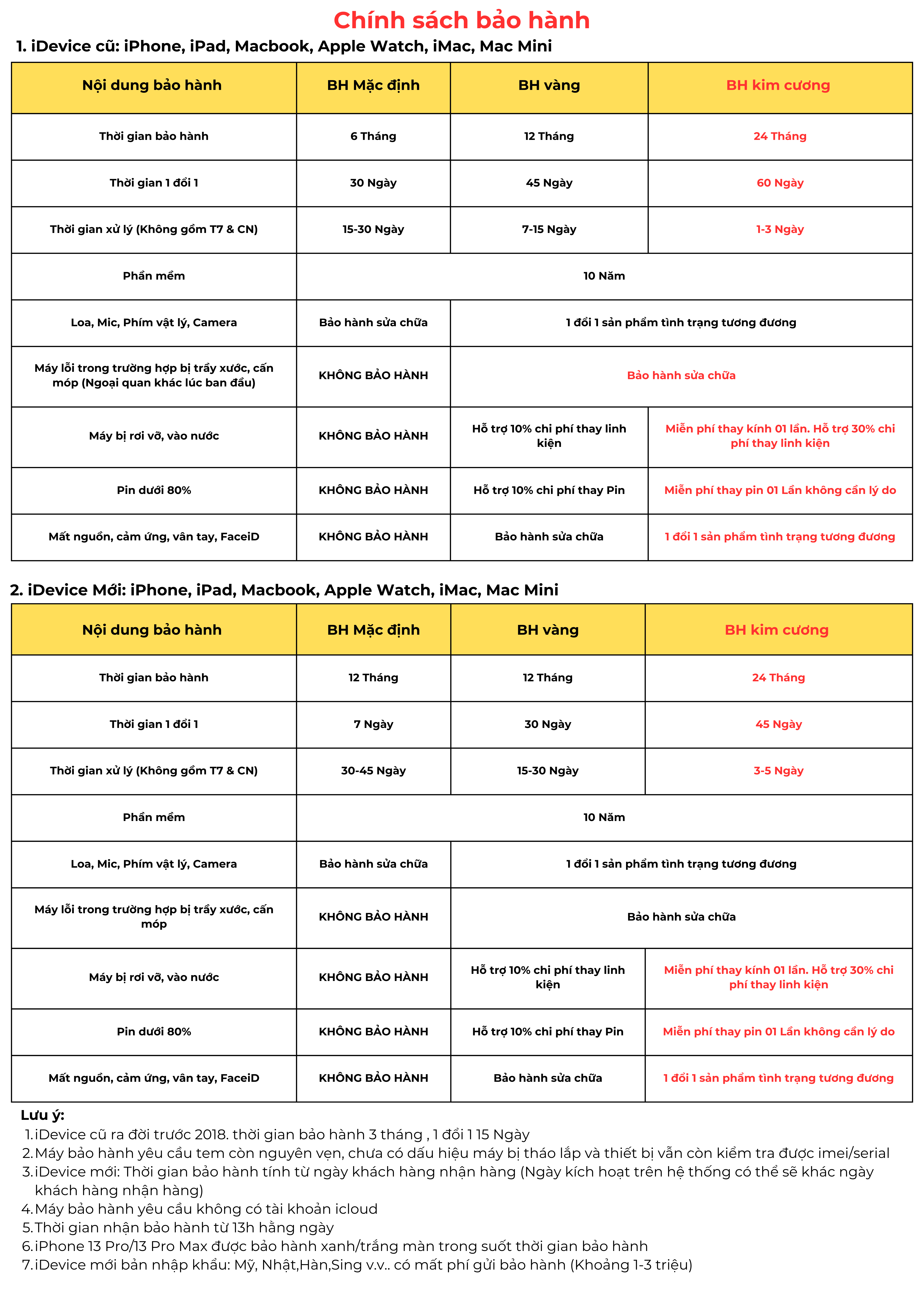 Với máy còn bảo hành của Apple, khách hàng có thể mất phí gửi bảo hành (Free khi mua bảo hành kim cương) |