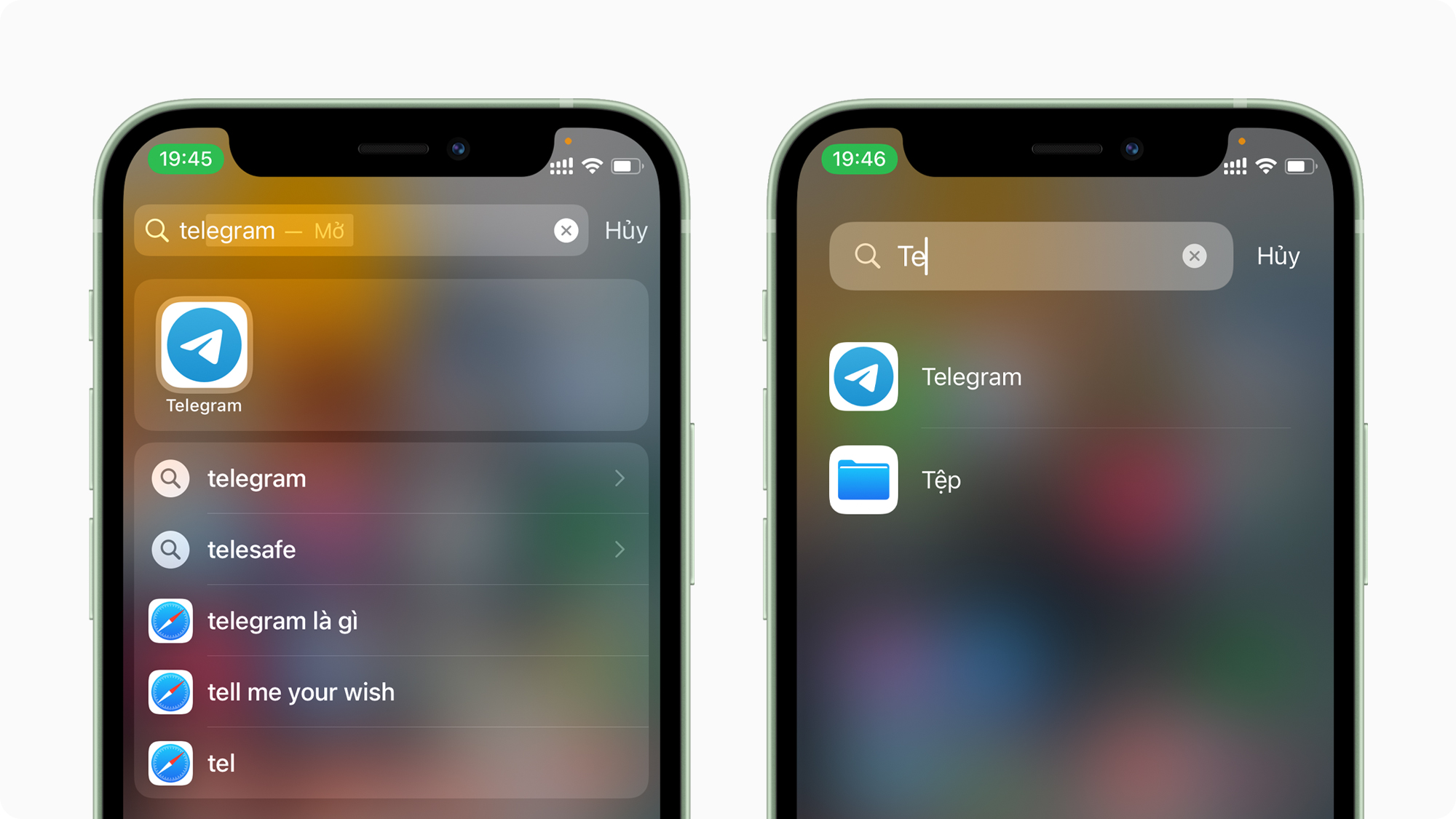 Muốn truy cập lại app thì các bạn vuốt thanh Spotlight xuống gõ tên app hoặc vào App Library tìm tên app là ra.