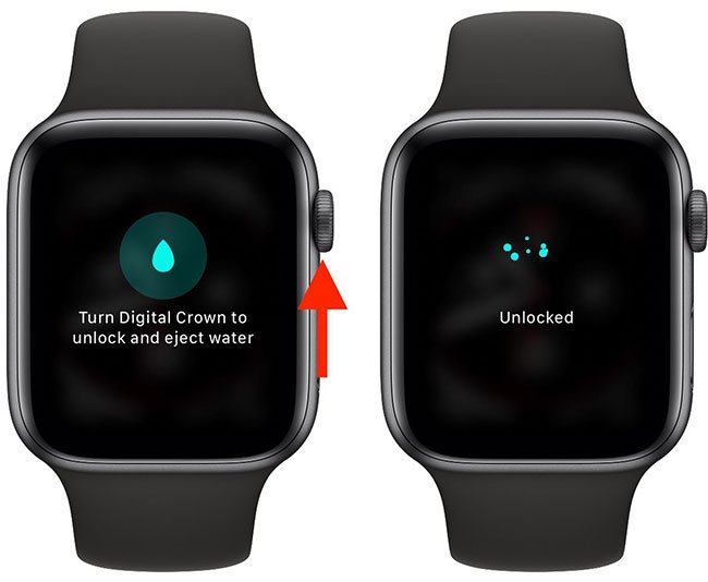 Bạn có thể sử dụng Núm xoay Digital Crown để đồng hồ của bạn rung mạnh nhất có thể, từ đó đẩy được nước ra khỏi màng loa.