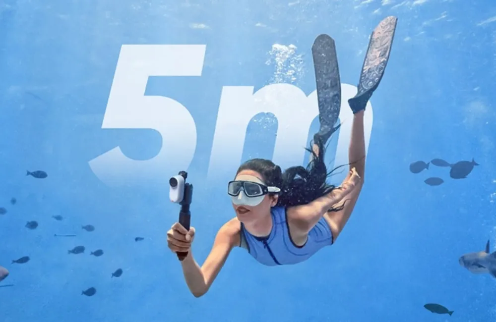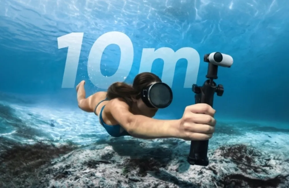 Bên cạnh sự kế thừa về khả năng chống rung, Insta360 Go 3S còn sở hữu bước tiến lớn về độ bền bỉ trong môi trường nước nhằm mở rộng giới hạn sáng tạo cho các nhà làm phim. Cụ thể, thân máy Go 3S hiện đã có thể chịu được áp suất nước ở độ sâu lên đến 10 mét, con số này ấn tượng gấp hai lần so với giới hạn của phiên bản trước đó. Thêm vào đó, thiết bị Action Pod đi kèm cũng được gia cố khả năng bảo vệ với chuẩn IPX4, giúp máy vận hành an toàn trước các cơn mưa rào hoặc tình trạng nước bắn từ nhiều phía.