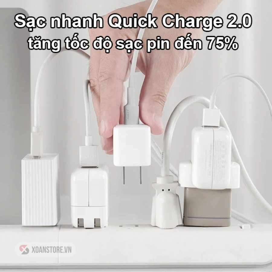 Hỗ trợ thêm công suất 20W thì nhà sản xuất còn cung cấp cho củ sạc này sạc nhanh chuẩn Quick Charge 2.0. Với chuẩn sạc nhanh này, nó giúp tăng tốc độ sạc pin nhanh đến 75%, một chiếc máy tính bảng thông thường phải mất đến 7 giờ song với củ sạc Aukey, thì chỉ cần tới 3 giờ để nạp đầy năng lượng.