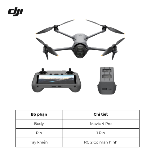 Về hậu kỳ chuyên nghiệp, thiết bị cung cấp đầy đủ các không gian màu như D-Log, D-Log M và HLG. Dải tương phản động (dynamic range) đạt mức ấn tượng với 16 stop trên ống kính 28mm, 14 stop trên ống kính 70mm và 13 stop trên ống kính 168mm. Riêng biến thể Mavic 4 Pro Creator được trang bị bộ nhớ trong 512GB, hỗ trợ định dạng ALL-I 4:2:2, đáp ứng hoàn hảo các tiêu chuẩn khắt khe của quy trình sản xuất điện ảnh chuyên sâu.