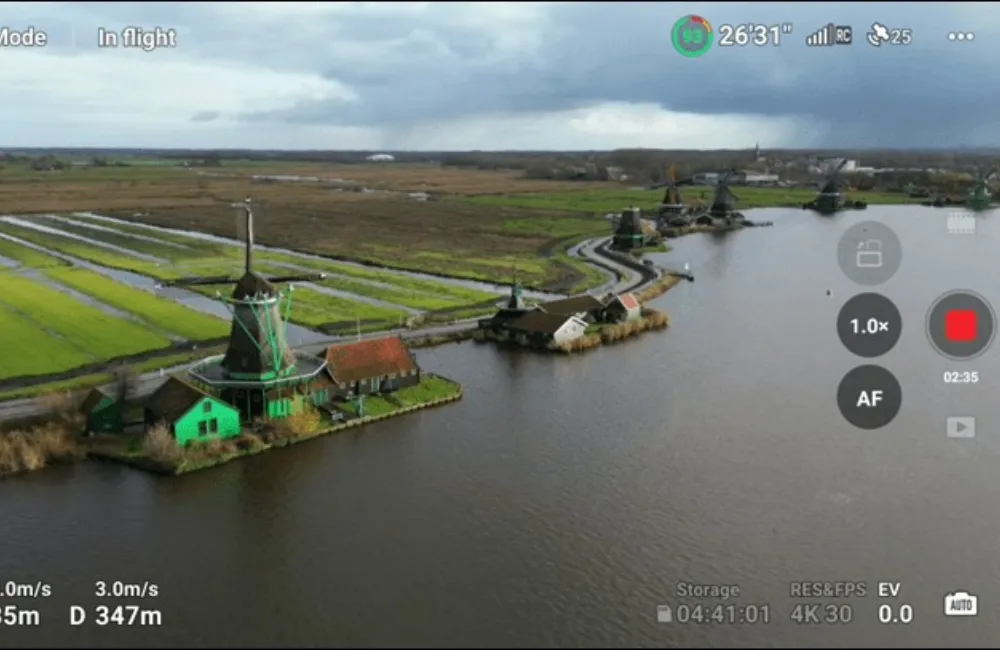 Về hiệu năng ghi hình, DJI Mini 3 hỗ trợ độ phân giải tối đa 4K/30fps ở chế độ tiêu chuẩn, mang lại độ sắc nét cao cho các cảnh quay toàn cảnh. Nếu ưu tiên sự mượt mà cho các chuyển động nhanh, người dùng có thể linh hoạt chuyển đổi sang chuẩn 2.7K/60fps hoặc 1080p/60fps. Một cải tiến vượt trội so với thế hệ Mini 2 tiền nhiệm chính là khả năng quay video HDR. Tính năng này giúp máy xử lý tốt các vùng sáng - tối đối lập, giữ lại chi tiết vùng trời và mặt đất một cách hài hòa, tạo nên những thước phim có chiều sâu và sống động hơn đáng kể.