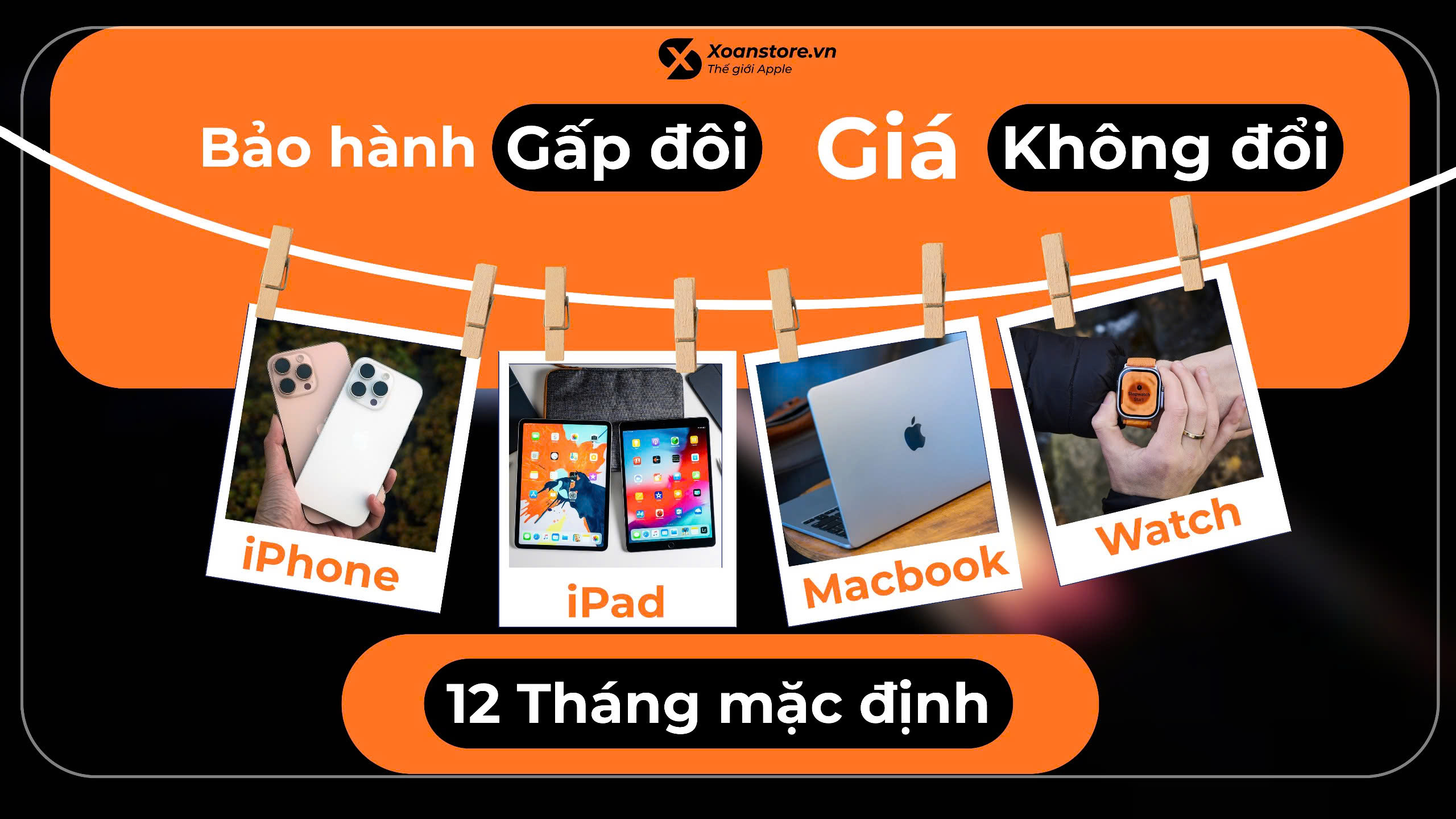 Xoăn Store chính thức gấp đôi thời gian bảo hành tiêu chuẩn cho toàn bộ sản phẩm Apple, từ 6 tháng lên thành 12 tháng, áp dụng cho các thiết bị hàng đầu như iPhone, iPad, MacBook, Apple Watch, và AirPods. Đây là lời cam kết mạnh mẽ nhất về chất lượng và sự an tâm. Đặc biệt, việc nâng cấp quyền lợi này được thực hiện mà giá bán sản phẩm vẫn giữ nguyên. Quyết định này không chỉ khẳng định sự tự tin vào sản phẩm mà còn thể hiện lòng trân trọng tuyệt đối đối với sự tin tưởng của các quý khách hàng.