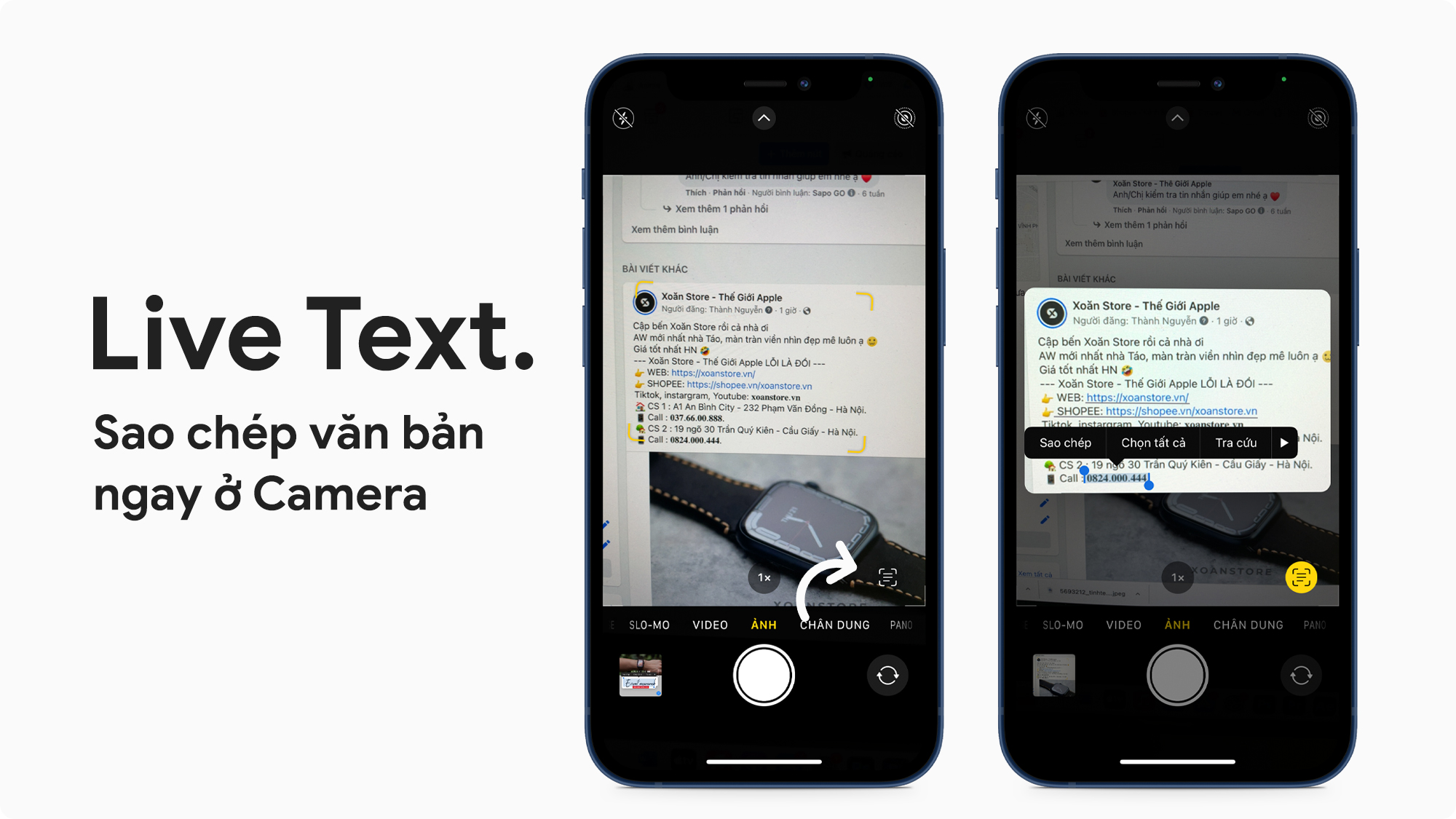 Ngoài ra, bạn cũng có thể không cần nhấn vào biểu tượng Live Text mà nhấn giữ vào đoạn văn bản cần sao chép luôn cũng được nhé. Áp dụng để sao chép số điện thoại cũng nhanh lắm luôn.