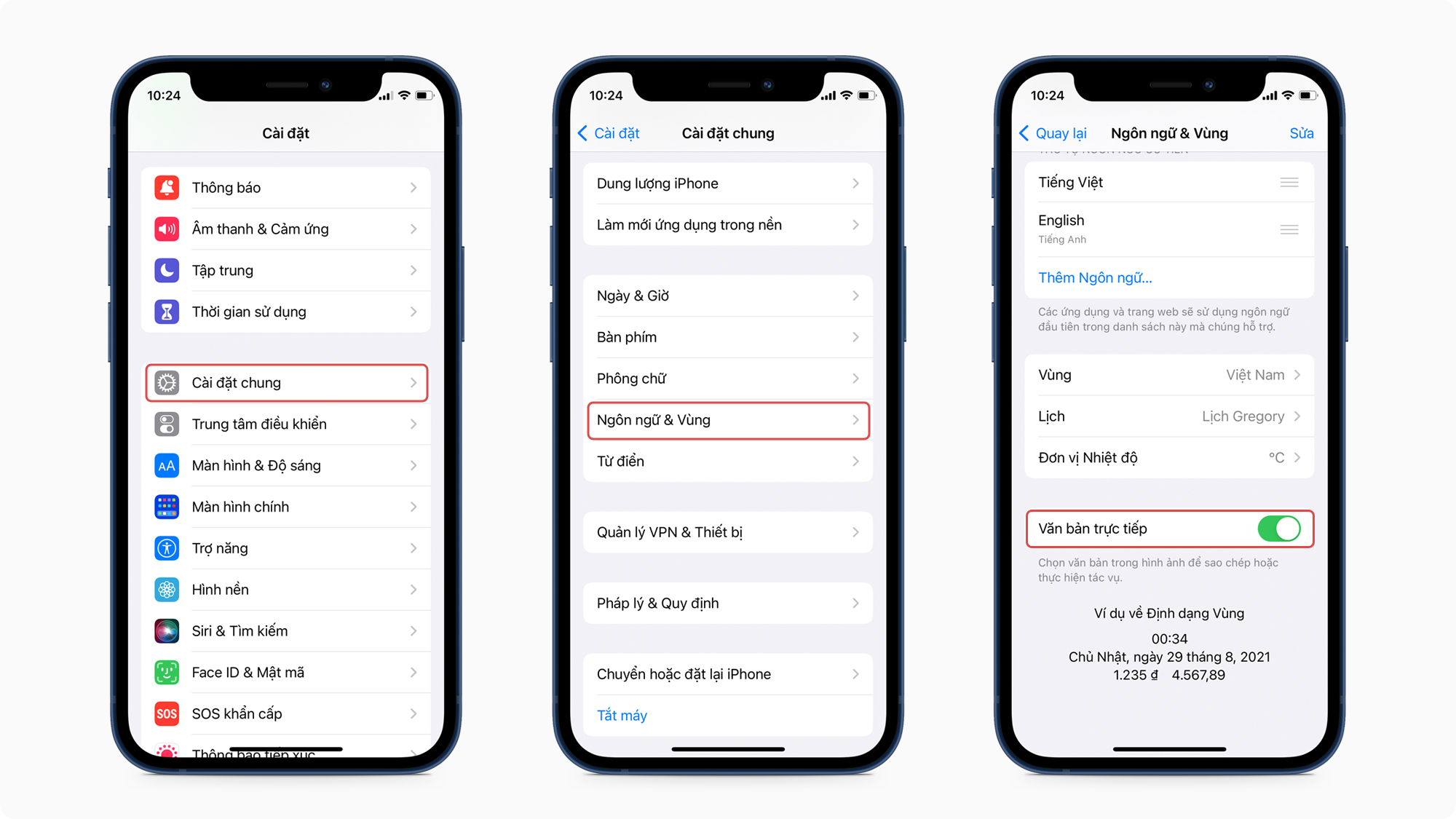 3. Bật tùy chọn Văn bản trực tiếp (Live Text) lên.