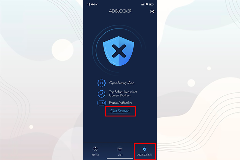 Bước 3: Sau khi hoàn tất quá trình thiết lập, bạn sẽ được dẫn tới trang chủ của ứng dụng. Tại đây, bạn hãy chọn tab AdBlocker > nhấn Get Started.