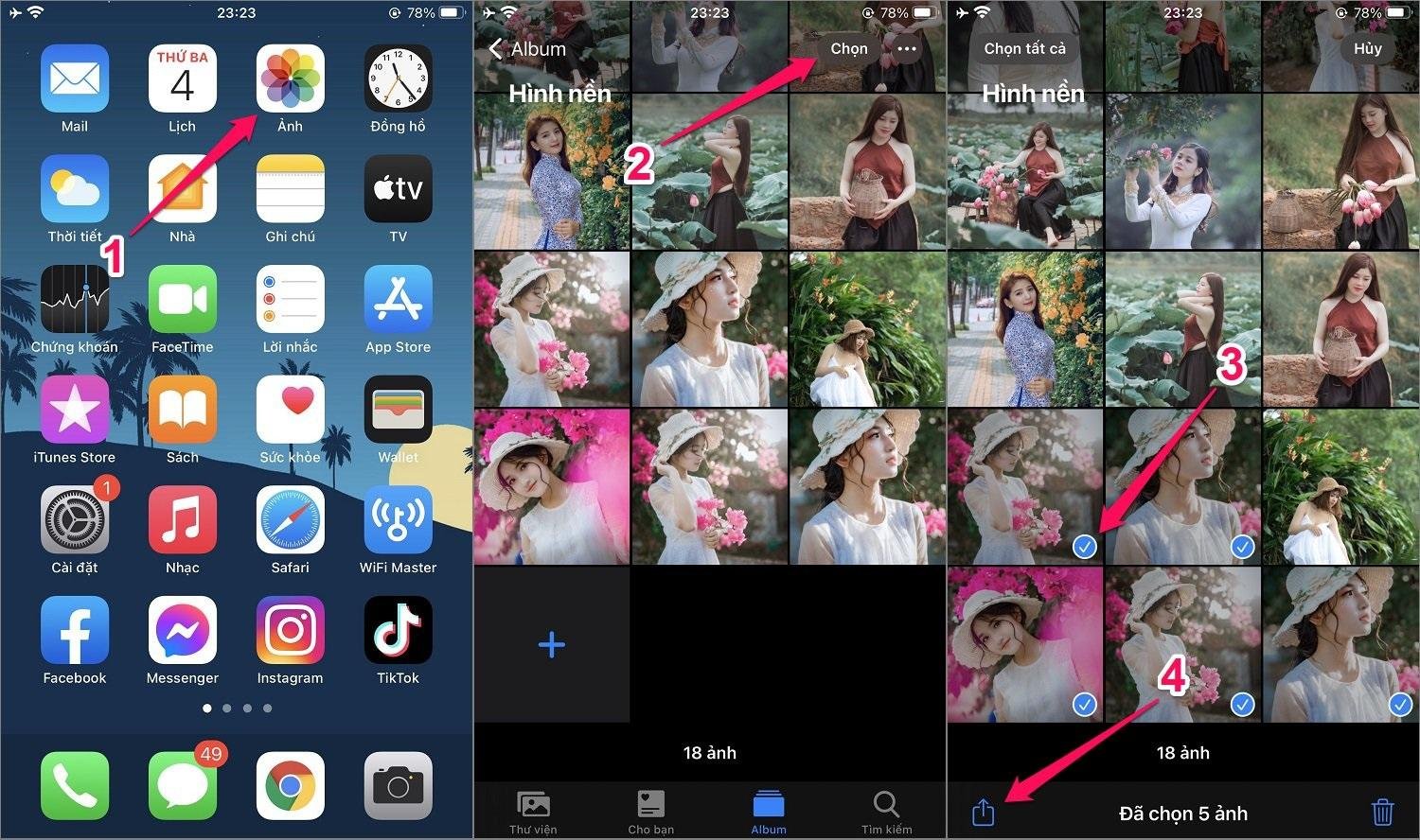 - Bước 3: Nhấn chọn toàn bộ hình ảnh và video bạn muốn ẩn đi.