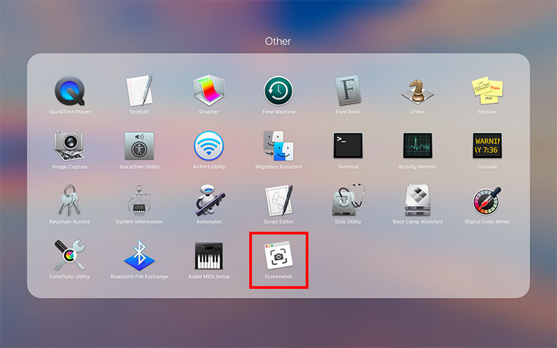 Vào mục Other trên trang Menu ứng dụng rồi chọn Screenshot.