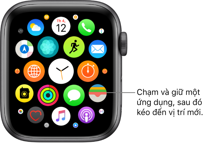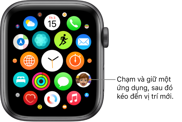 - Bước 3: Đừng quên bấm vào Digital Crown ngay sau khi bạn hoàn thành xong việc sắp xếp ứng dụng.