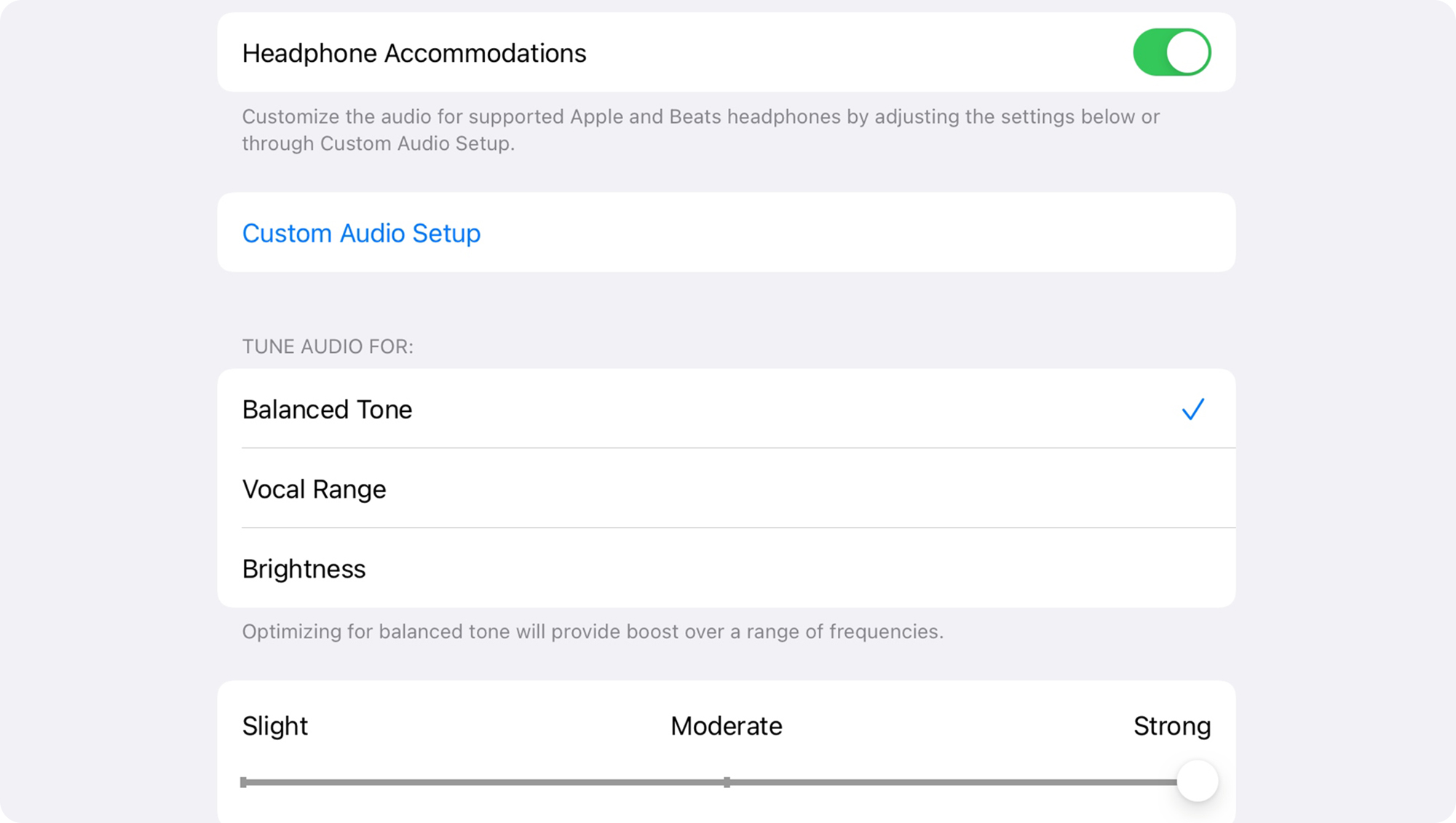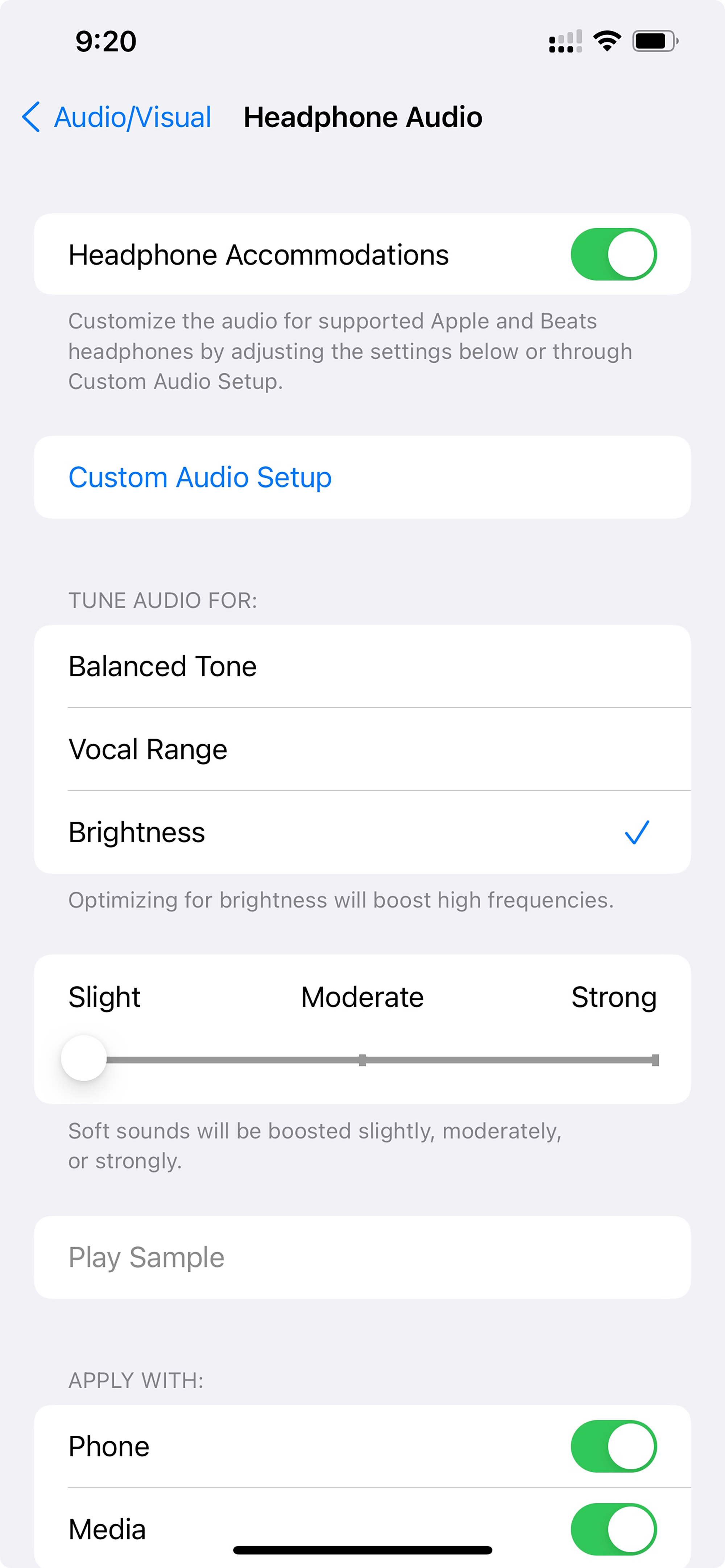 Mình thấy đây là mục nâng cao chất lượng âm thanh rất hay dành cho các bạn đang sở hữu các tai nghe của Apple như AirPods, Beats. Để bật tính năng này ae vào: Settings > Accesibility > Audio/Visual> Headphone Accommodations > Gạt qua On.