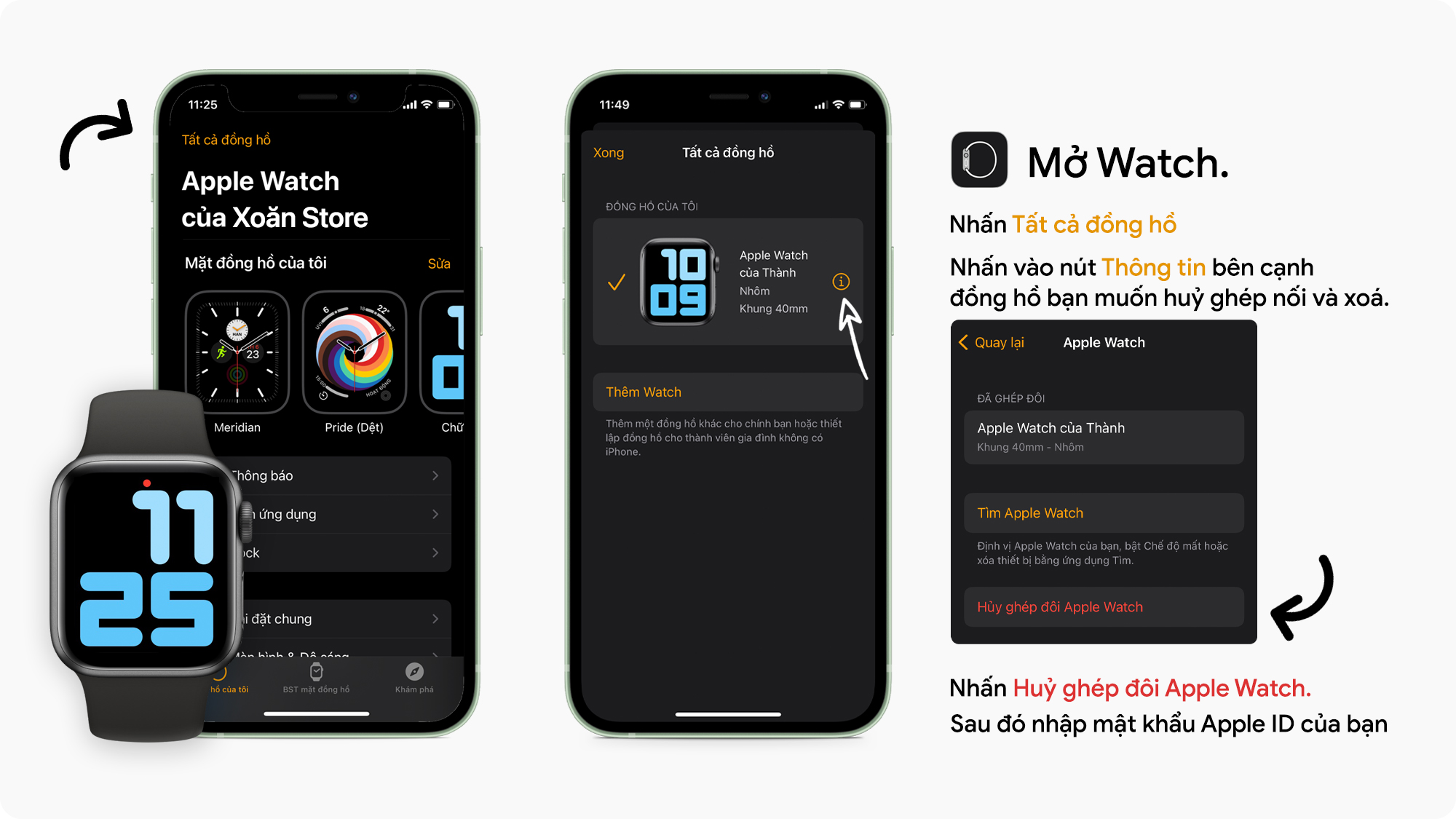 Nhấn “Huỷ ghép đôi Apple Watch”