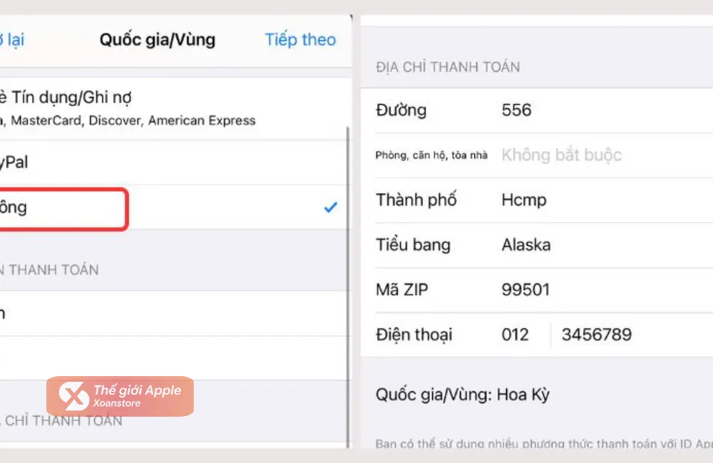 Tiếp theo, hãy cung cấp thông tin địa chỉ tương ứng với quốc gia bạn đã chọn.