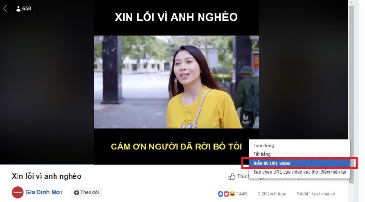 Bước 2: Mở video trên Facebook bạn muốn tải, sau đó tiến hành nhấp chuột phải chọn vào “Hiển thị URL video”.