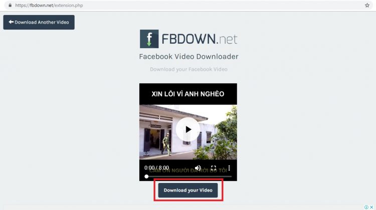 Bước 5: FBDown Video sẽ mở sang 1 trang mới, sau đó bạn tiến hành chọn vào “Download your Video”.