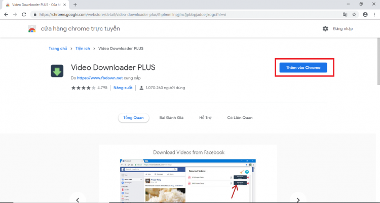 Bước 1: Tải và cài đặt Video Downloader PLUS trên trình duyệt Chrome của bạn. Link tại đây. Chọn “Thêm vào Chrome”.