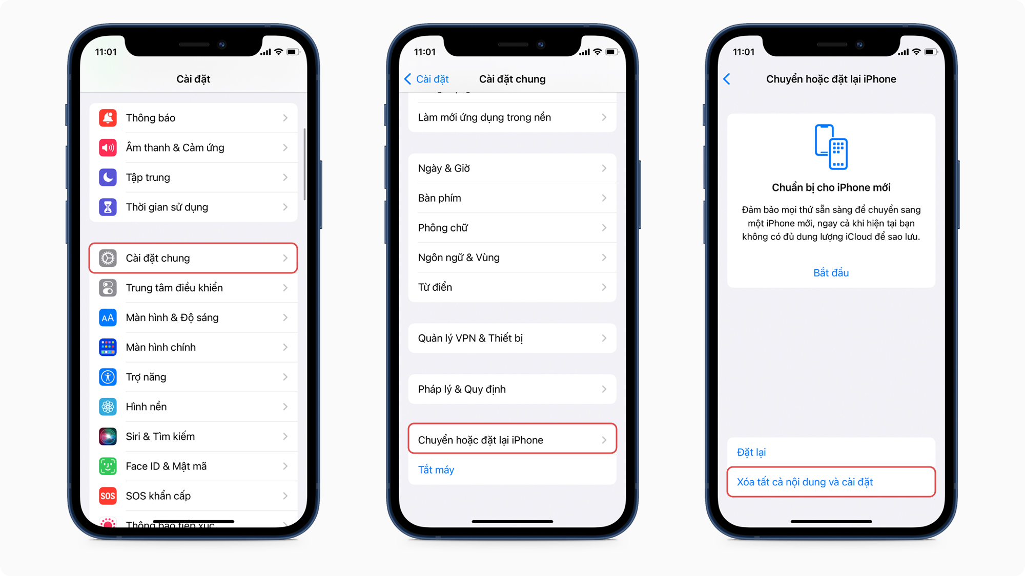 Bước 4. Chọn Xóa tất cả nội dung và cài đặt