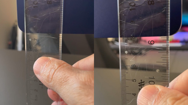 Youtuber iPhonedo, một trong những người đầu tiên phát hiện ra vấn đề này, cảm thấy có gì đó kỳ lạ với chiếc iMac của mình. Và quả thật, khi dùng thước để đo, nửa bên trái màn hình cách mặt bàn 7.6cm, trong khi nửa bên phải lại là 8cm.