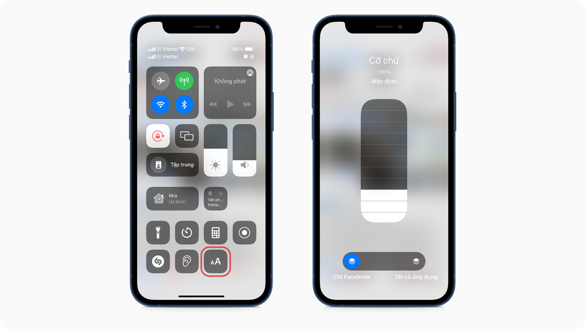 Như vậy khi bạn đang ở một app bất kỳ, bạn kéo Control Center xuống và chọn vào Text size (icon Aa) và điều chỉnh kích thước chữ bằng việc chọn theo từng nấc. Một là bạn thay đổi cho toàn bộ app, hai là thay đổi kích cỡ chỉ cho một app mà bạn đang dùng.
