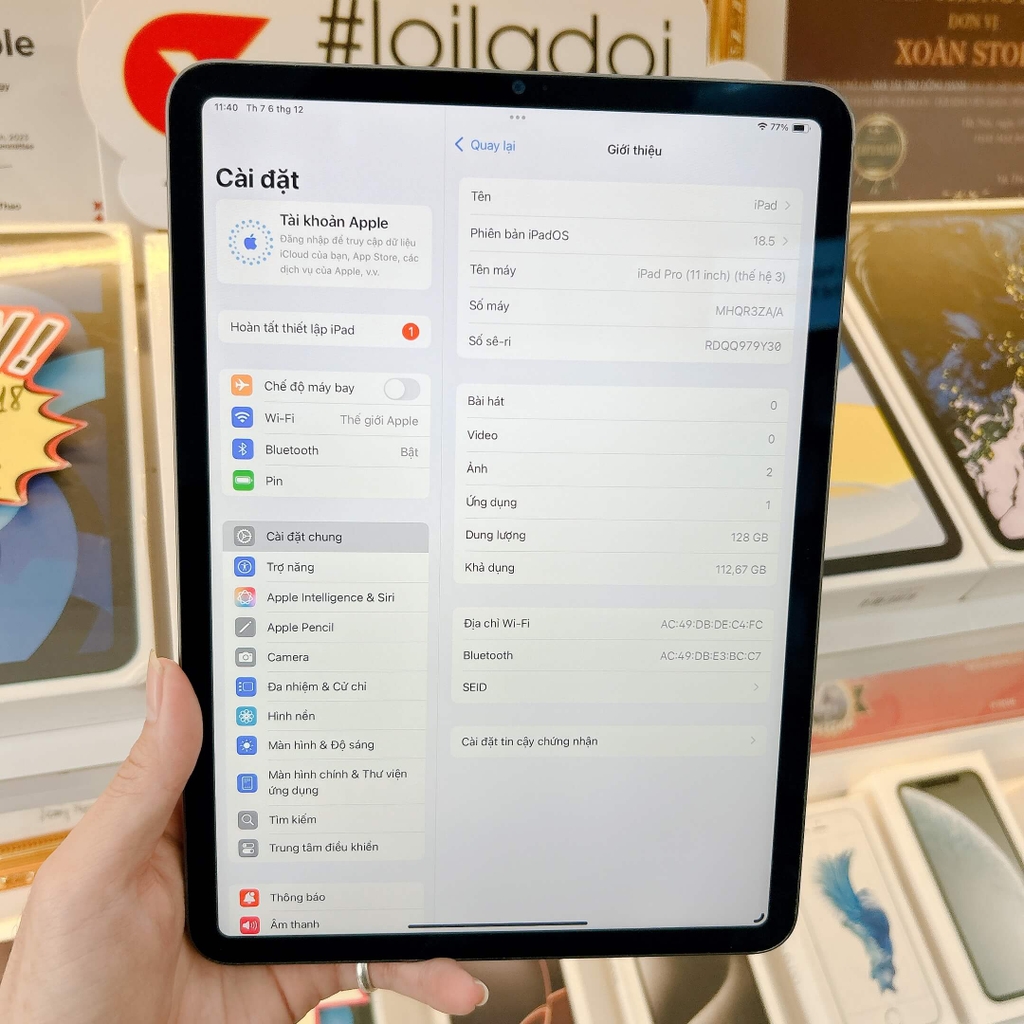 | Màn hình | 11 inch, IPS LCD, Liquid Retina HD, 2388 x 1668 Pixels |