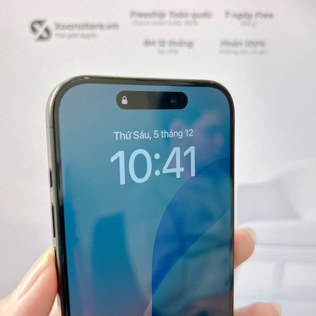 Phần viền màn hình trên iPhone 15 Pro cũng được thiết kế mỏng hơn đáng kể kết hợp với Dynamic Island nhỏ gọn khiến cho diện tích sử dụng trên màn hình máy trở nên rộng hơn