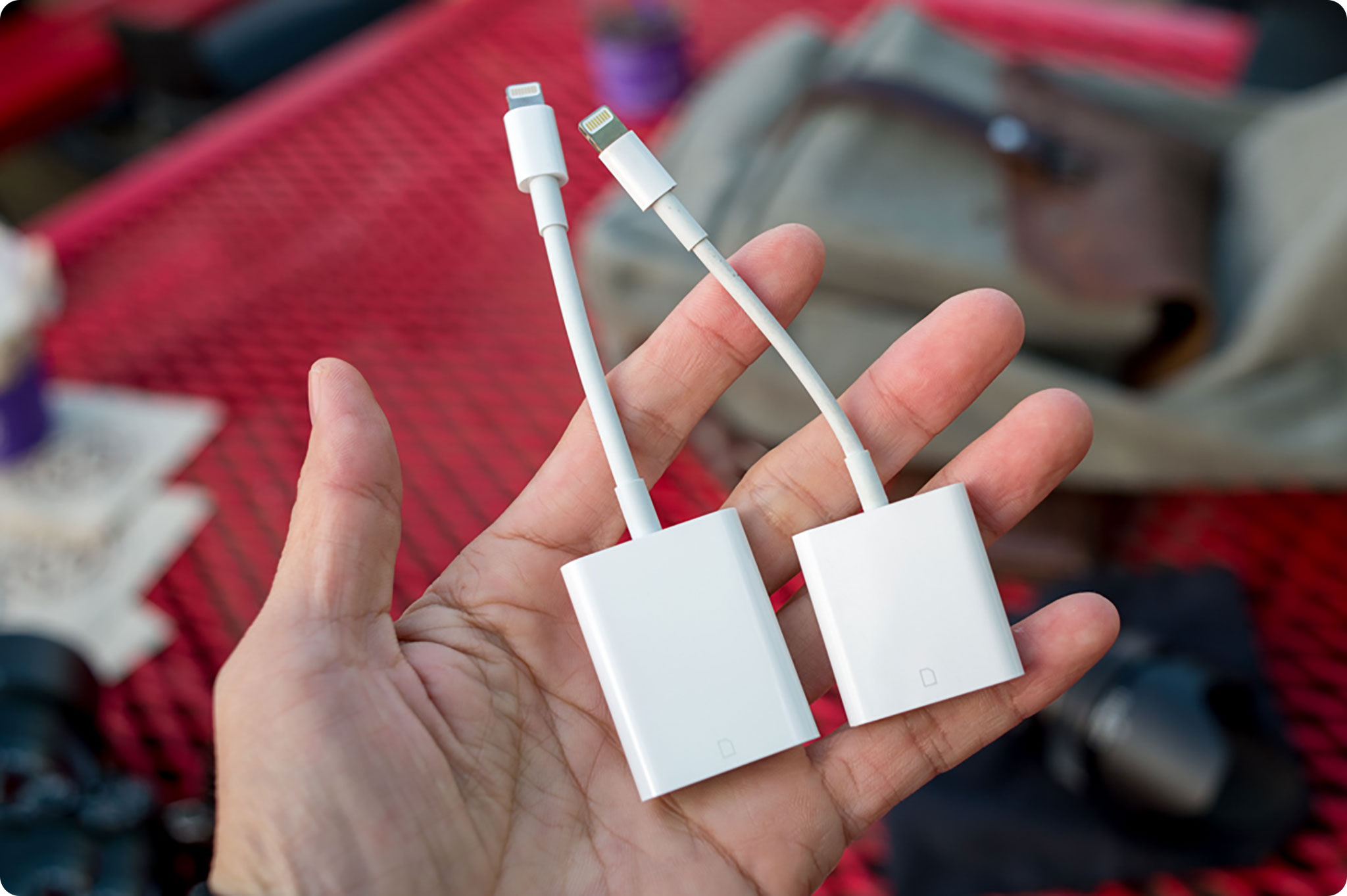 iPad Pro được những người làm việc về hình ảnh sử dụng nhiều. Với hai phụ kiện là đầu đọc thẻ lightning USB 3 và cổng chuyển lightning sang USB-A tốc độ USB 3.0 giúp iPad Pro kết nối được với máy tính để 'import' hình vào ứng dụng Photos. Trên thực tế, cổng lightning của iPhone cũng làm được vậy nhưng rõ ràng một thiết bị dạng handheld device như thế sẽ ít nhiều mất đi lợi thế sử dụng với các tác vụ về hình ảnh, video như iPad Pro. Khi đó, nhiều dòng máy ảnh như Sony a7R II độ phân giải 42.4 MP ra đời khiến cho những thiết bị sử dụng USB 2.0 khó lòng đáp ứng.