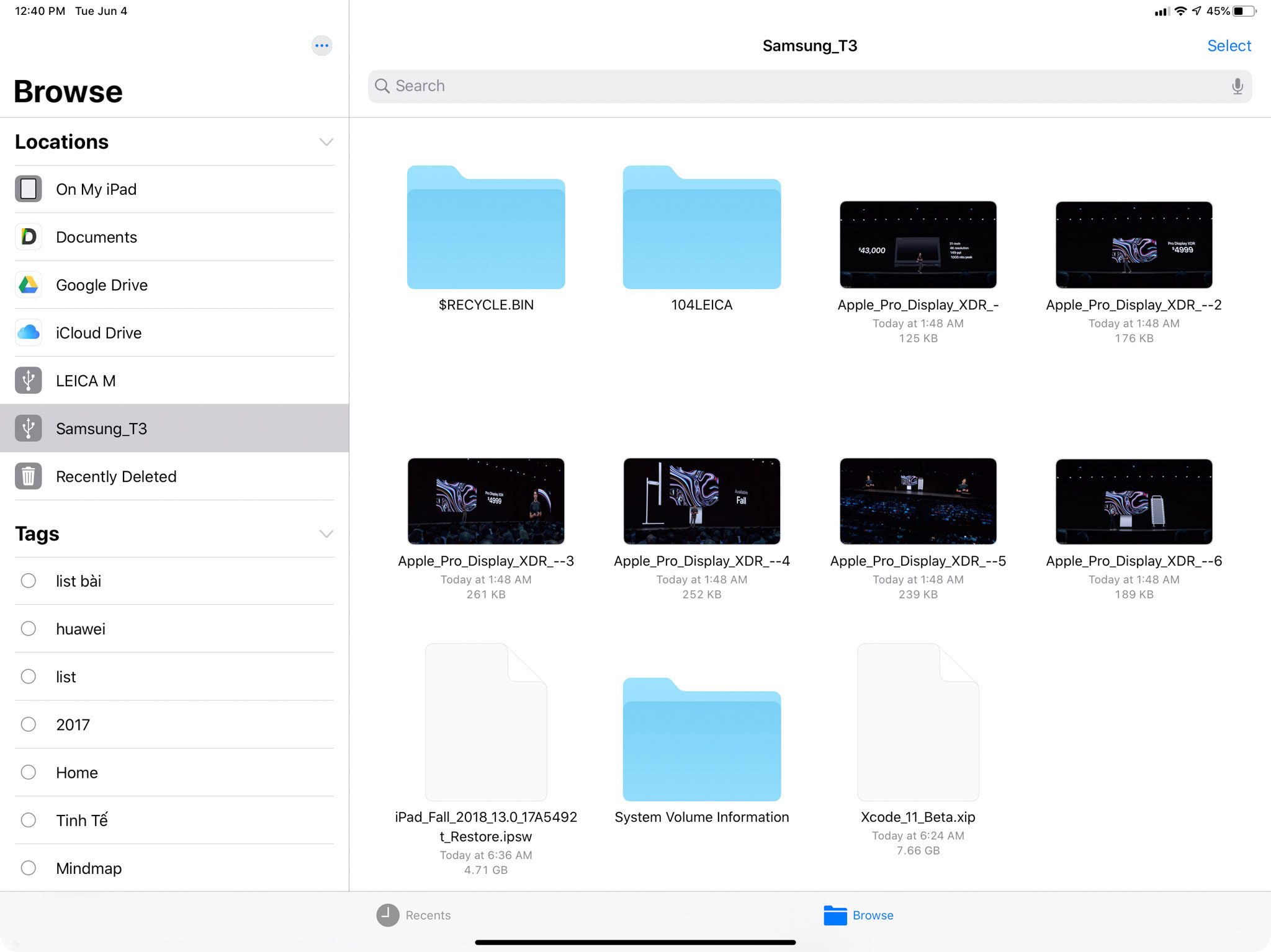 Sang đến iOS 10, Apple đưa ra ứng dụng Files cho phép các thiết bị iOS truy cập được vào bộ nhớ lưu trữ bên ngoài: ổ nhớ USB, ổ cứng, SSD rời. Lúc này, cổng lightning trên iPad Pro lộ ra một điểm bất tiện với bộ chuyển bên ngoài đó là nguồn cấp cho các thiết bị ngoại vi tốc độ cao bên ngoài. Apple đã giới thiệu cổng chuyển lighting sang USB-A để gắn các thiết bị lưu trữ bên ngoài, nhưng nó cần thêm nguồn được cấp từ nguồn lightning khác. Với trải nghiệm phiền toái như vậy, Apple đã nhận thấy điều đó và kết nối USB-C sớm muộn cũng sẽ được thay thế cho lightning trên iPad Pro.