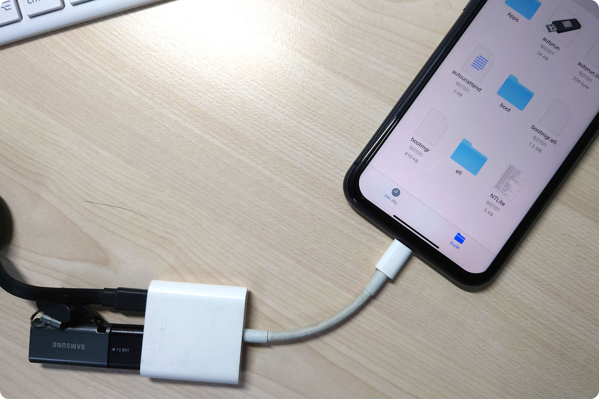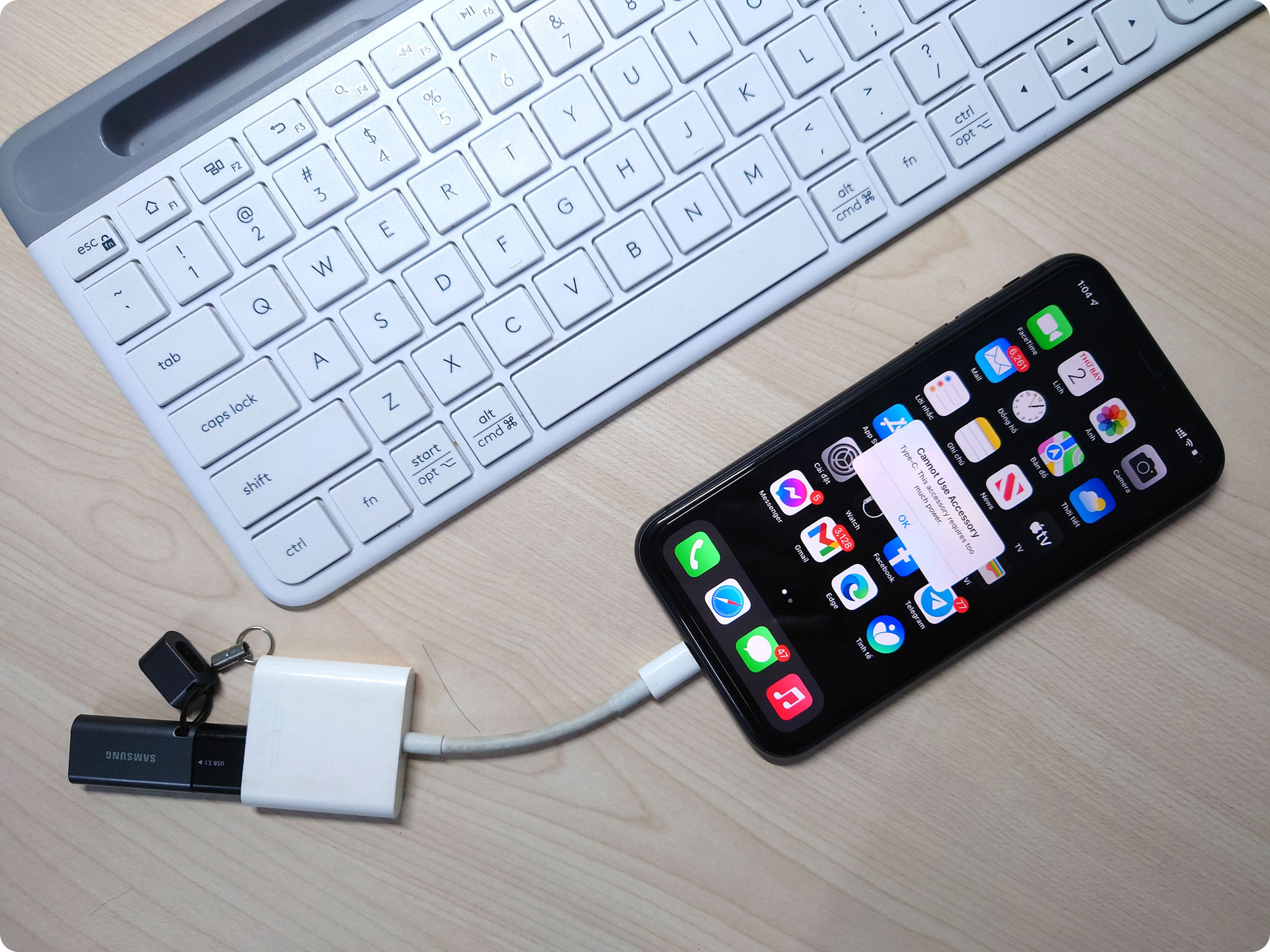 Đây là iPhone 11 sử dụng đầu chuyển lightning USB-A băng thông USB 3.0 để cắm ổ nhớ ngoài