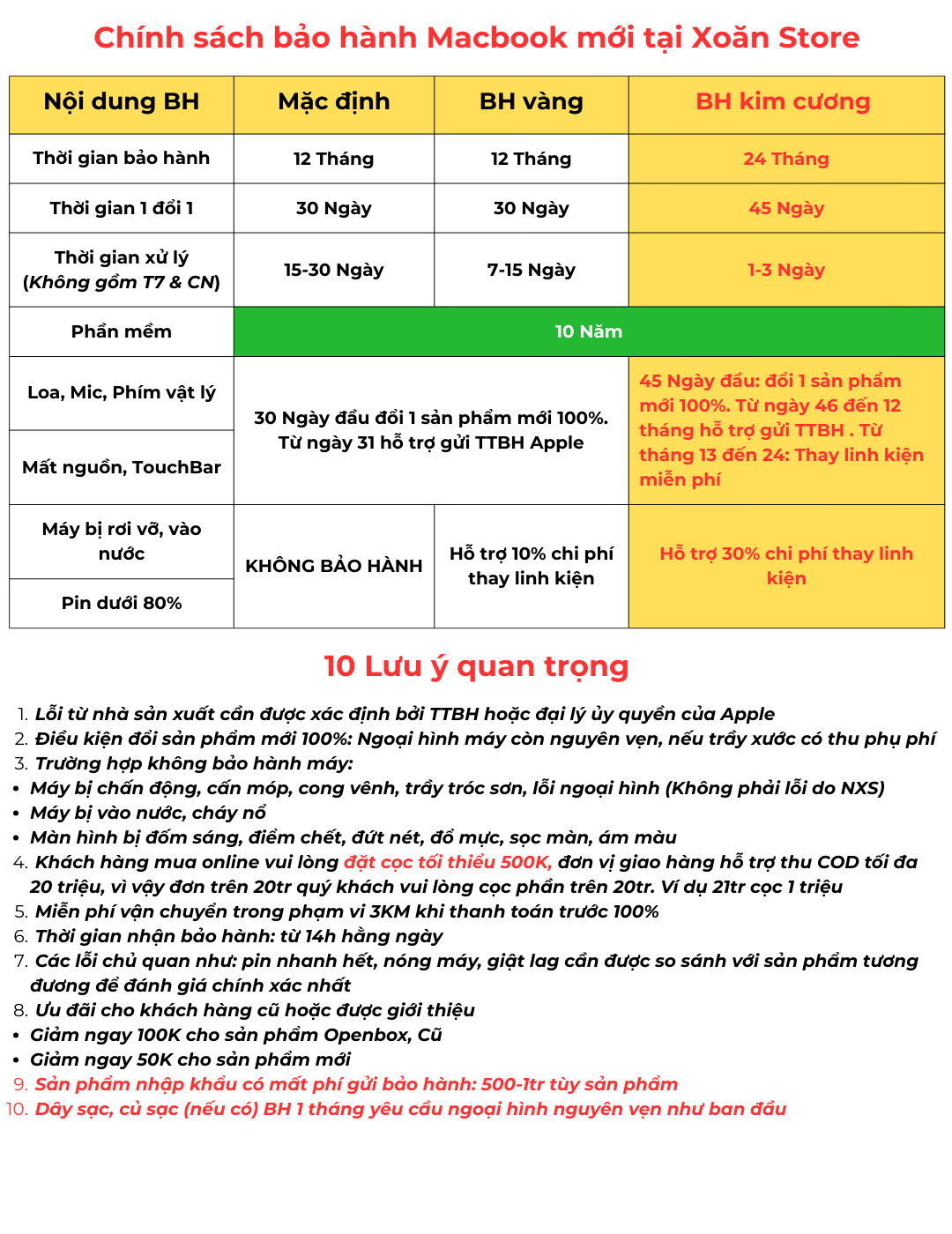 Để sở hữu chiếc Macbook Pro 14 inch M4 Pro 2025 với mức giá tốt nhất và chế độ bảo hành uy tín hàng đầu, Xoăn Store là địa chỉ đáng tin cậy dành cho bạn. Chúng tôi cam kết mang đến sản phẩm chính hãng với mức giá cạnh tranh nhất trên thị trường, cùng với chính sách bảo hành lên đến 24 tháng, giúp bạn hoàn toàn yên tâm trong quá trình sử dụng. Đặc biệt, khi Macbook Pro 14 inch M4 Pro 2025 tại Xoăn Store, quý khách hàng sẽ nhận được những ưu đãi vô cùng hấp dẫn: cam kết giá tốt nhất, miễn phí vận chuyển toàn quốc, chương trình thu cũ đổi mới với mức trợ giá tới 1 triệu đồng, dịch vụ bảo hành tại nhà tiện lợi và miễn phí dùng thử trong vòng 7 ngày, hỗ trợ lên đời miễn phí nếu không hài lòng. Hãy đến với Xoăn Store ngay hôm nay để trải nghiệm sự khác biệt!