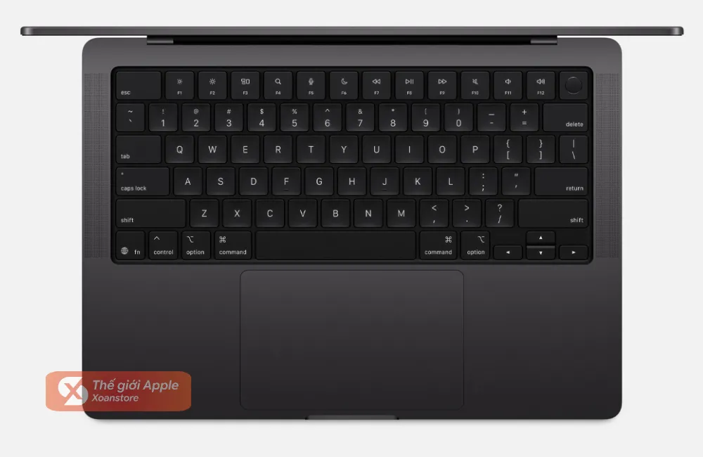 Phần viền màn hình siêu mỏng kết hợp cùng lớp kính Liquid Glass cao cấp tạo nên không gian hiển thị rộng mở và đầy cuốn hút. Sự kết hợp giữa bàn phím Magic Keyboard êm ái, bàn di chuột Force Touch rộng rãi và hệ thống tản nhiệt tiên tiến giúp duy trì sự thoải mái tối đa khi làm việc cường độ cao. Có thể nói, MacBook Pro 14 inch M5 không đơn thuần là một cỗ máy làm việc, mà còn là biểu tượng của sự đẳng cấp và chuyên nghiệp.