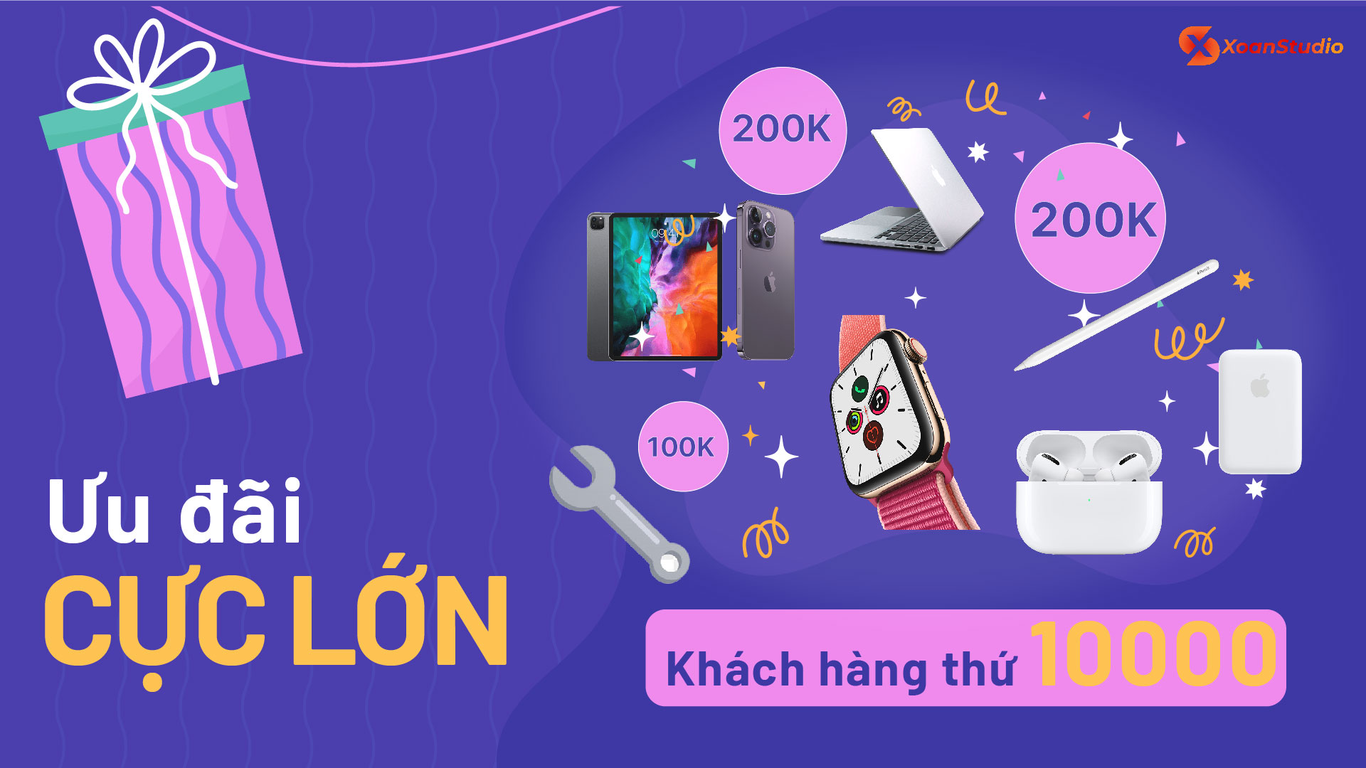 Nhân dịp chào đón khách hàng thứ 10000, Xoăn Store mang đến chương trình ưu đãi dành cho quý khách hàng, chương trình áp dụng đối với các sản phẩm và dịch vụ tại cửa hàng, cụ thể như sau:
