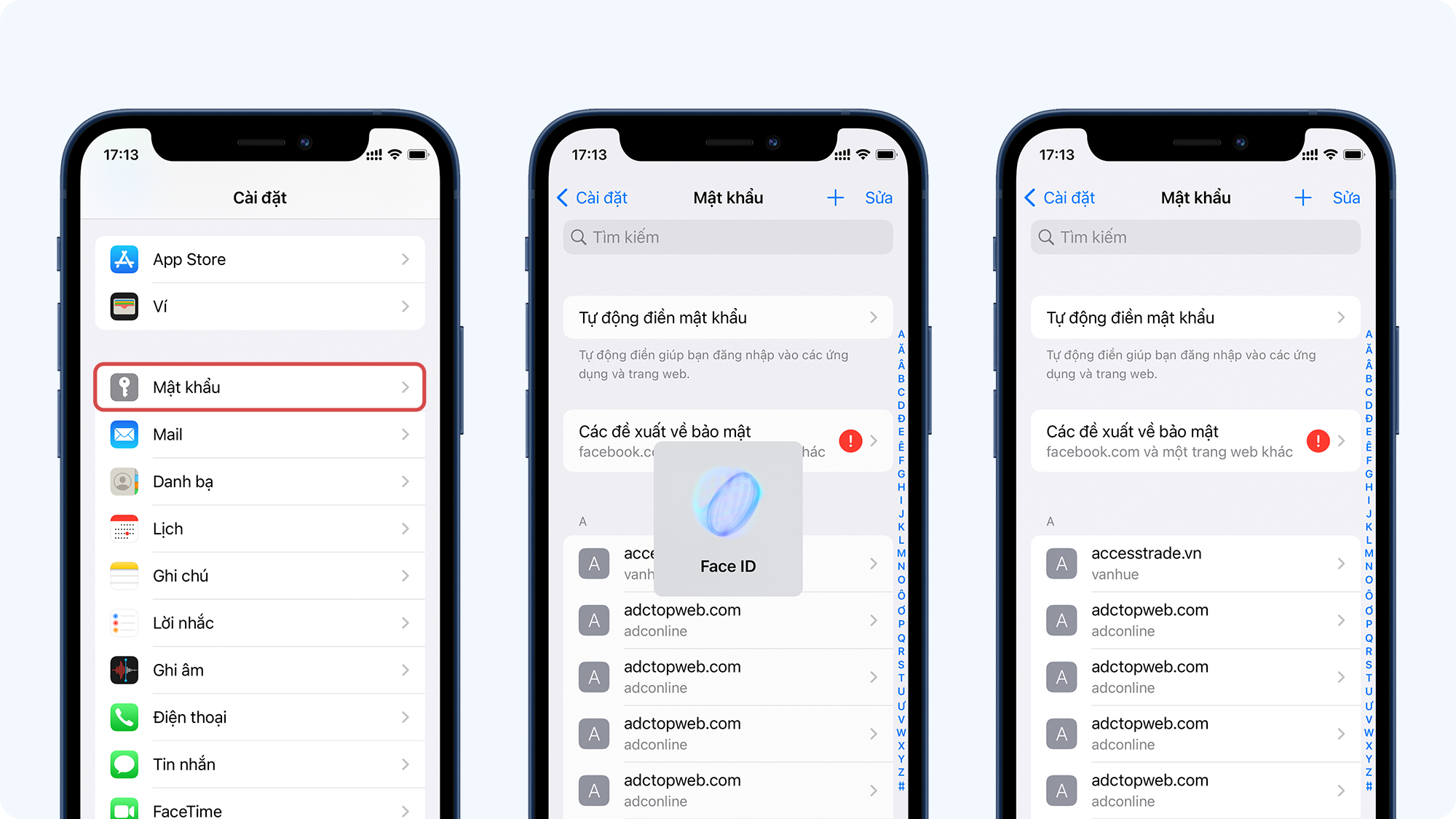 Bước 2: Bạn sẽ thấy lại mật khẩu tài khoản của mình. Tuy nhiên bạn phải dùng mật khẩu, Touch ID hoặc Face ID của iPhone mới có thể truy cập được. Nếu như ai đó chụp lại màn hình thì ảnh chụp sẽ không hiện mật khẩu. Quả thật về khoảng bảo mật cho người dùng thì không một hãng nào có thể qua được Apple