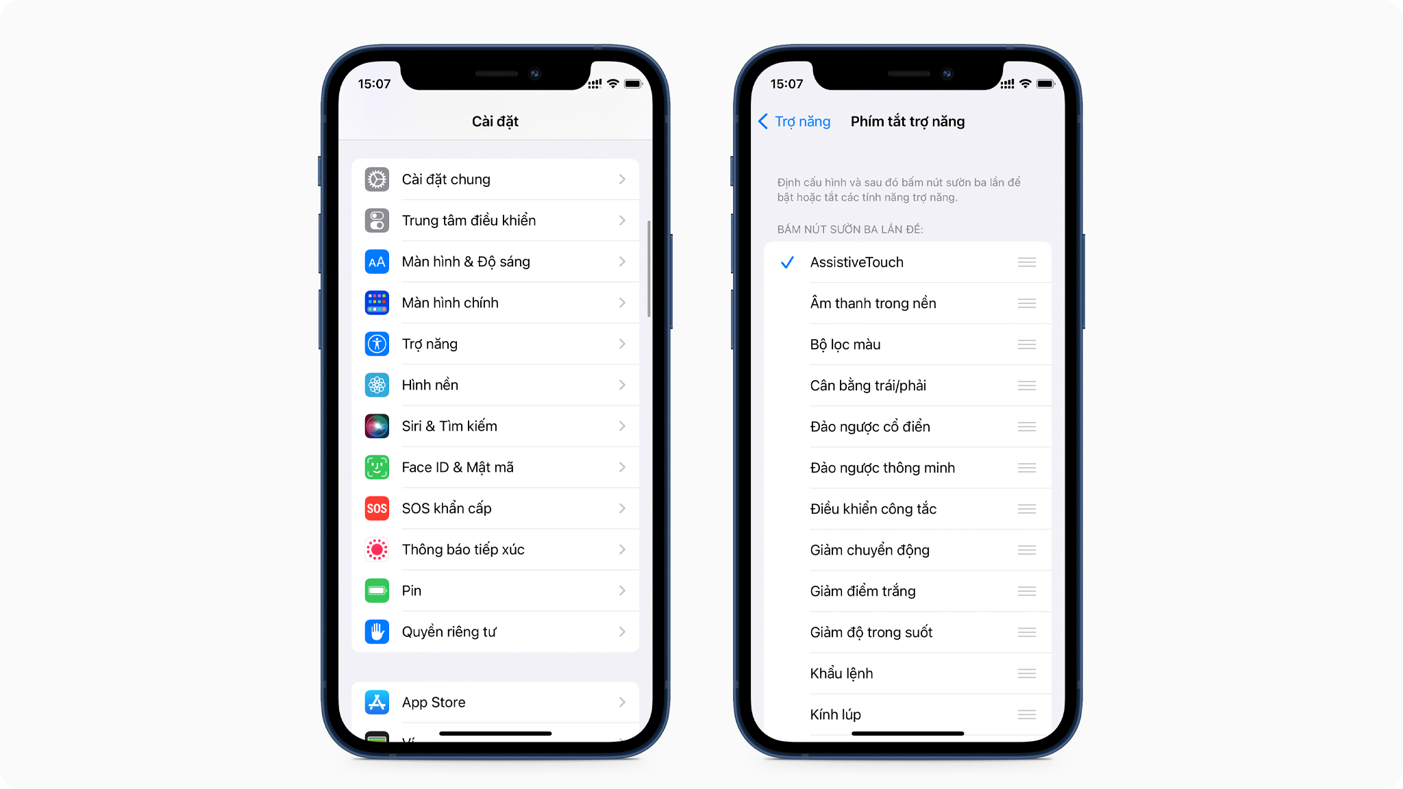 - Khẩu lệnh: Cho phép điều khiển iPhone bằng giọng nói.
